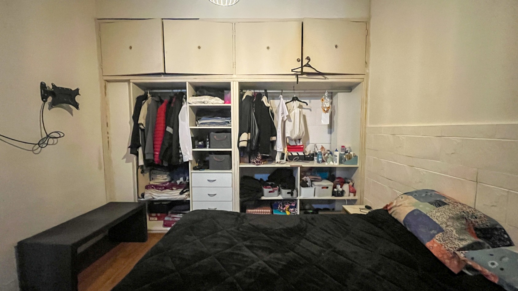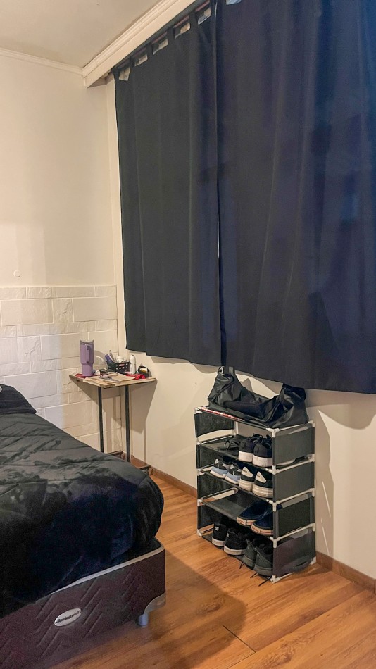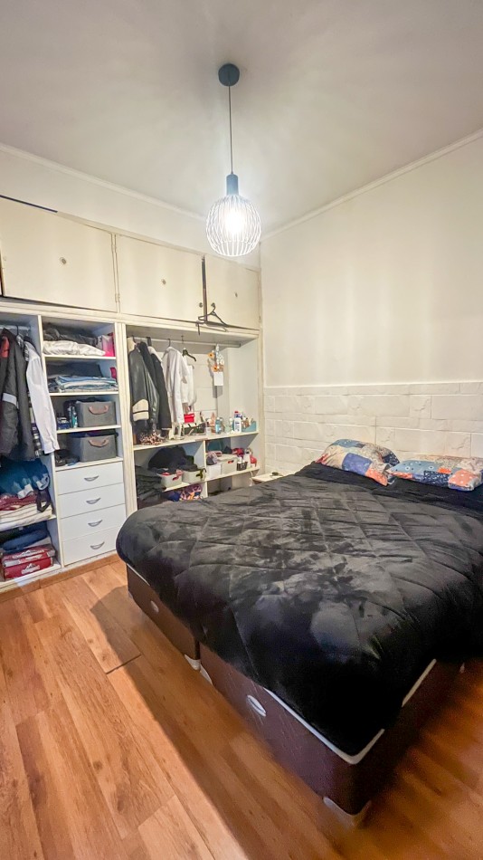 Dormitorio al contrafrente, que lo hace silencioso y brinda tranquilidad, con ventana hacia el patio, amplio placard con baulera, y piso flotante.