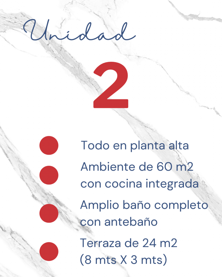 Todo en planta alta, ambiente de 60 m2 con cocina integrada.