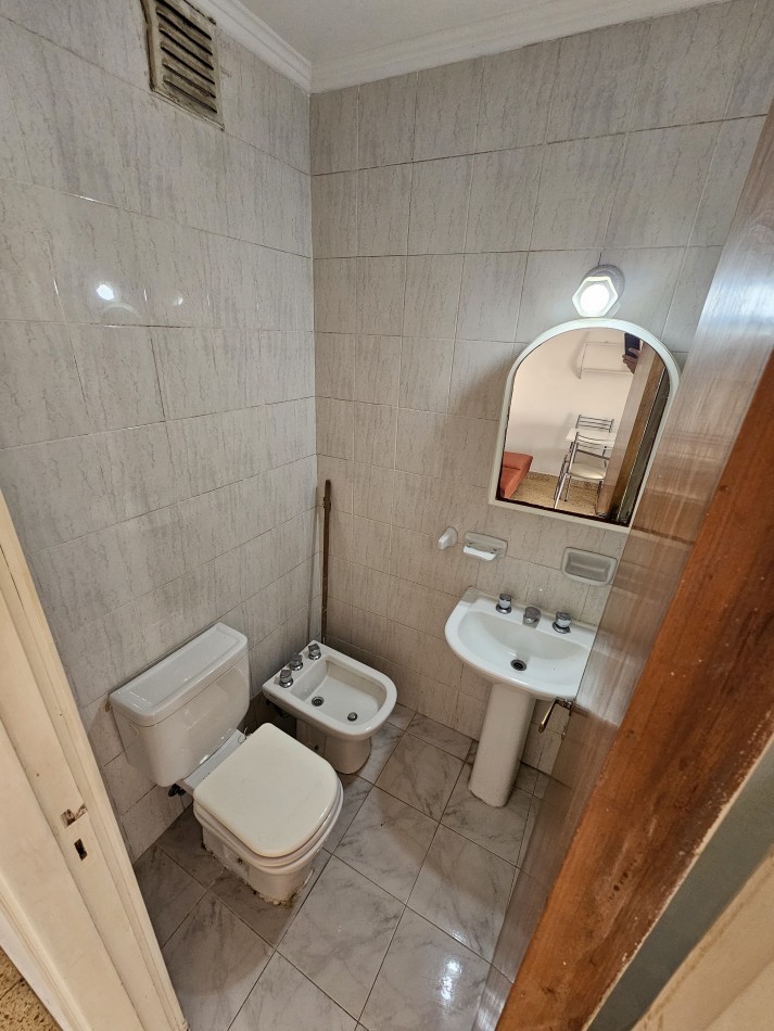 Baño completo, con bañera, y totalmente revestido en cerámicos.