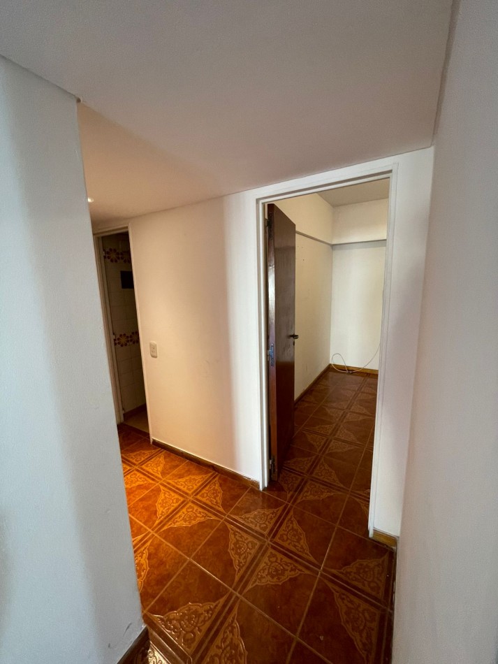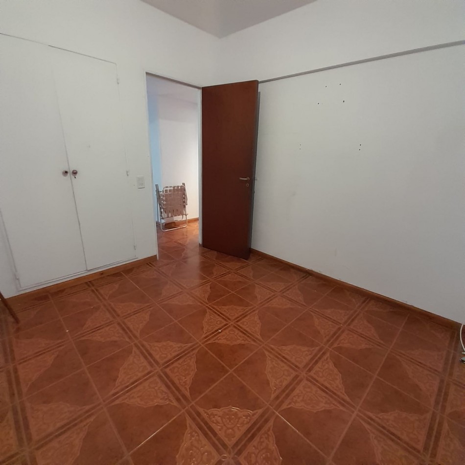 Dormitorio al contrafrente, con piso de cerámicos y placard empotrado.
