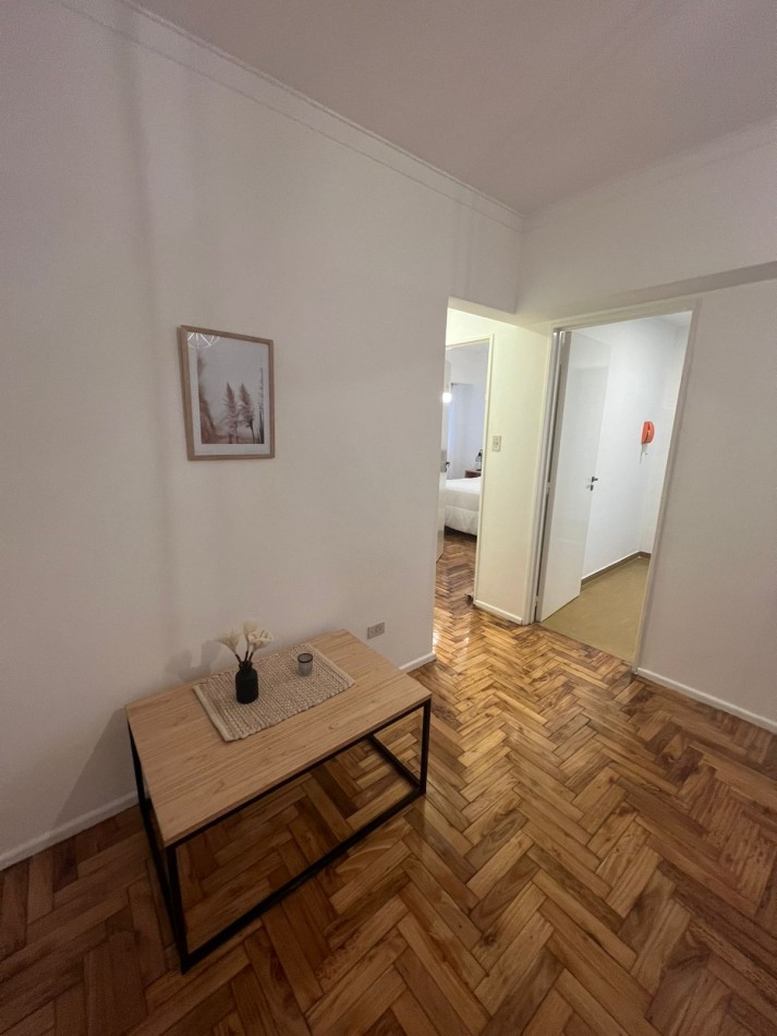 Living comedor luminoso, con piso de parquet y calefactor tiro balanceado. Pasillo distribuidor con placard.