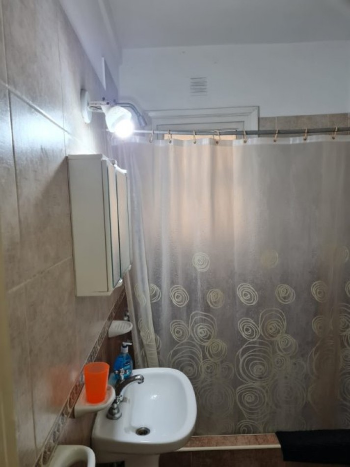 Baño completo, revestido en cerámicos, con ventilación natural.