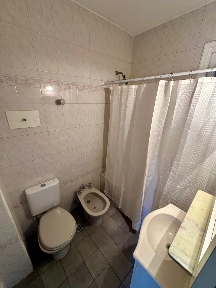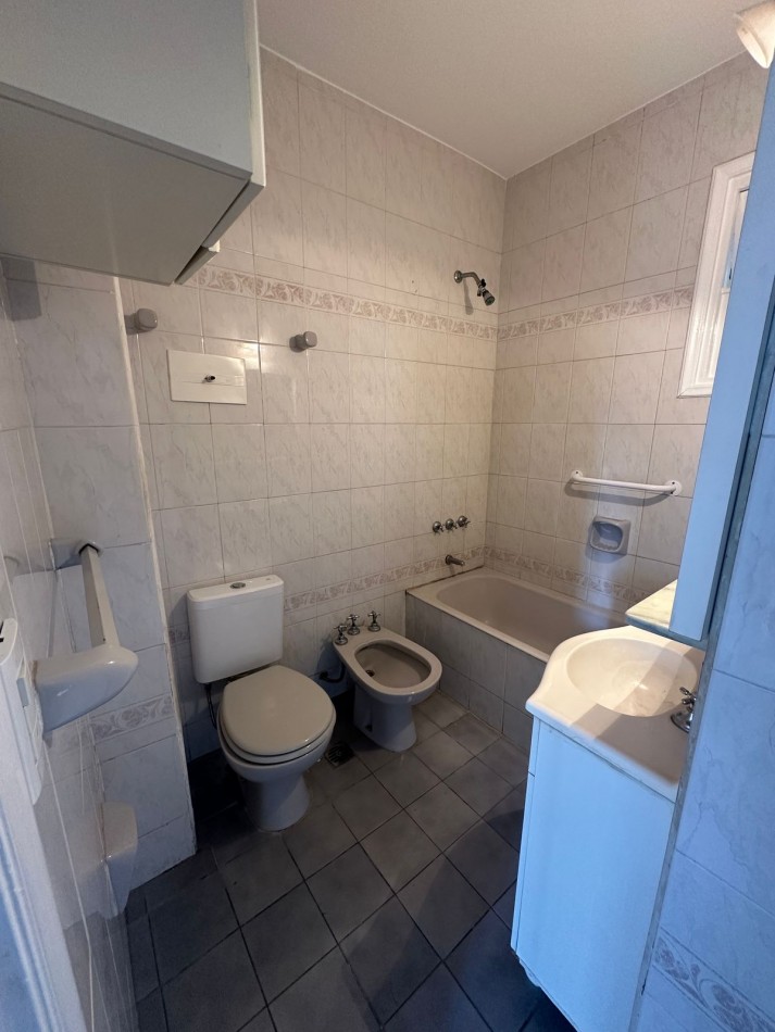 Baño principal completo, con bañera y ventilación natural.