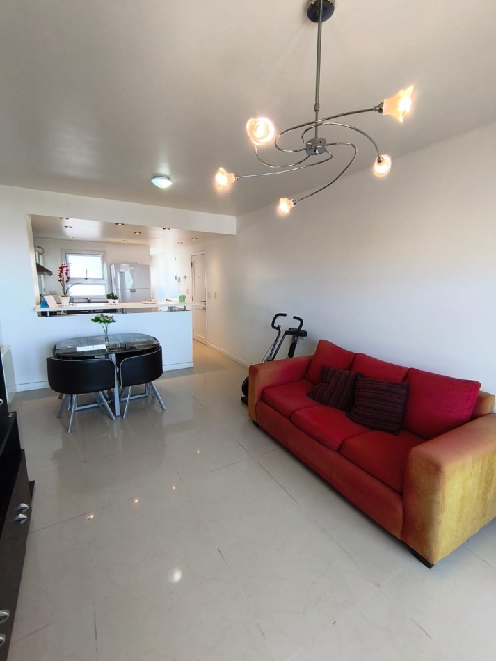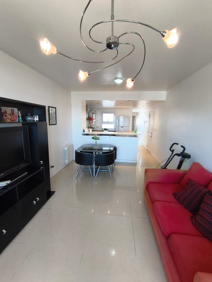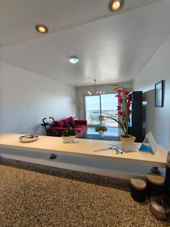 Living comedor muy luminoso, con amplio ventanal con salida al balcón y hermosa vista abierta al mar.